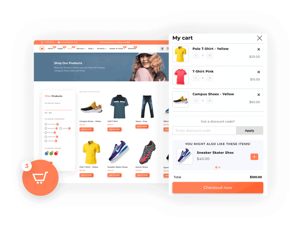 The Molti Ecommerce provides a really cool Shop Module Design.